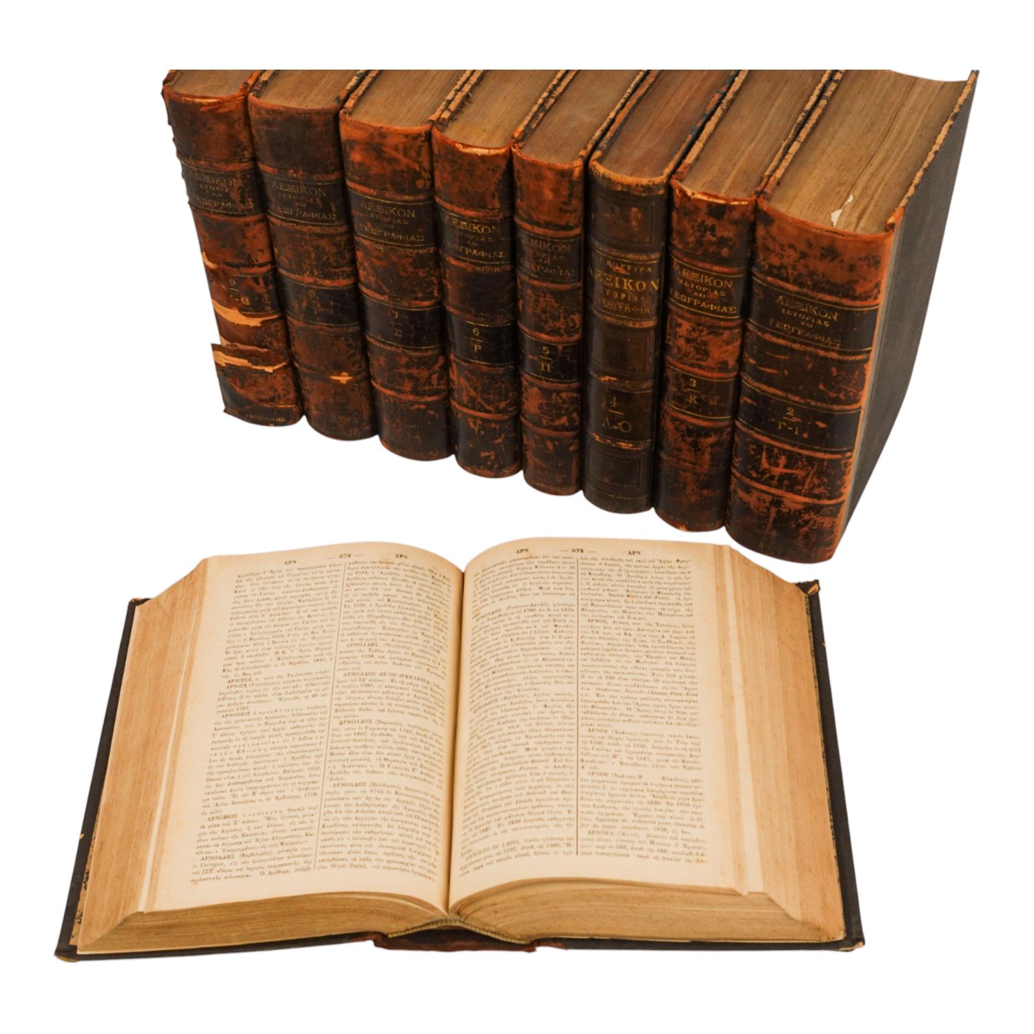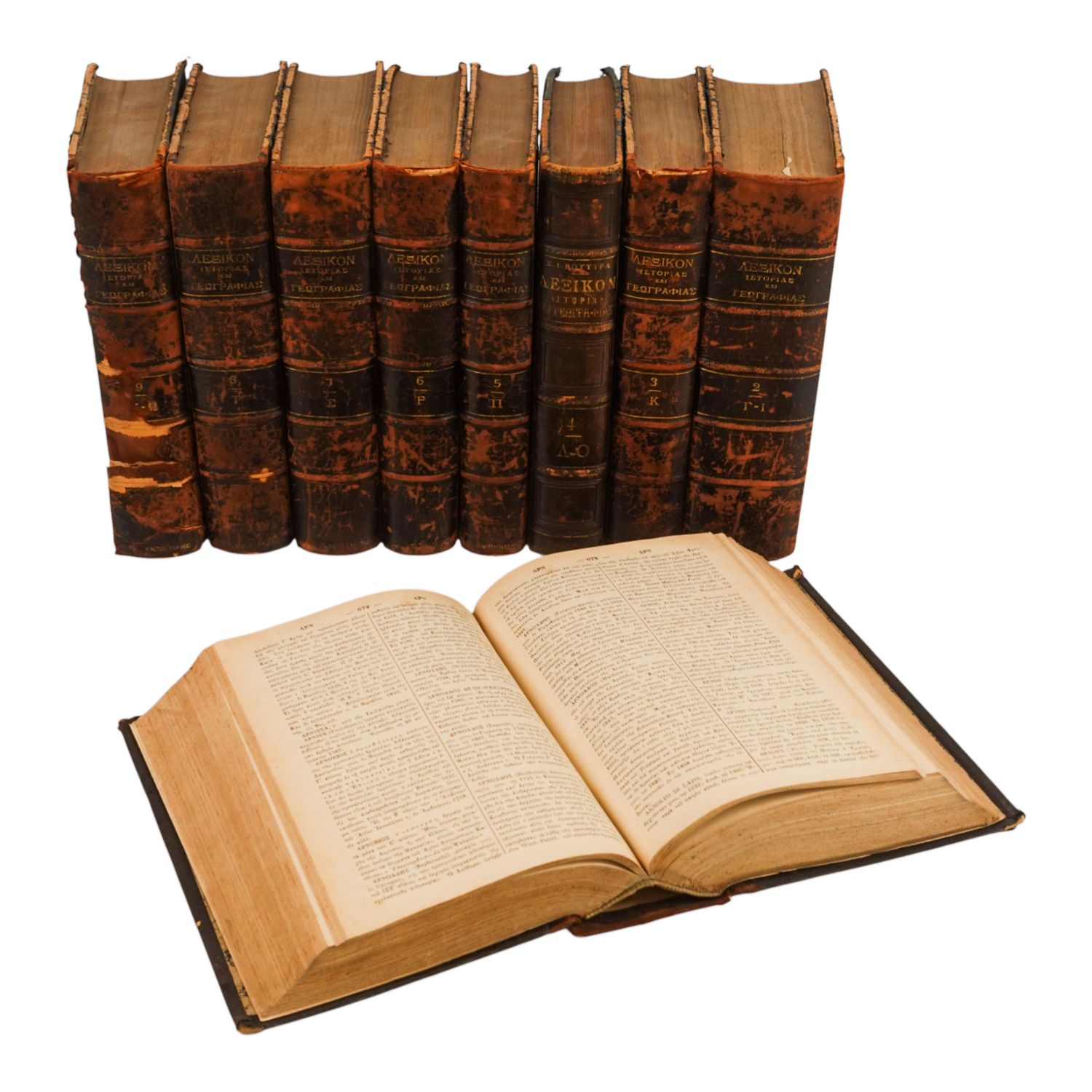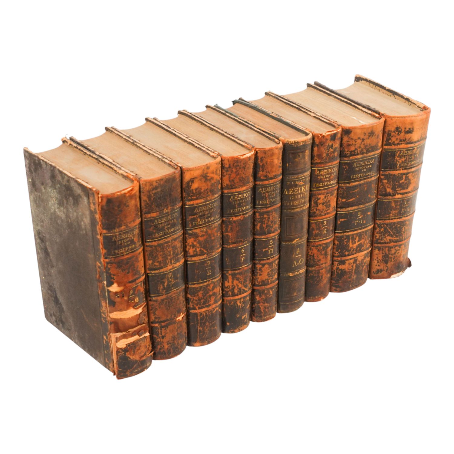 ΛΕΞΙΚΟΝ ΙΣΤΟΡΙΑΣ ΚΑΙ ΓΕΩΓΡΑΦΙΑΣ (LEXIKON ISTORIAS KAI GEOGRAFIAS) (9 Cilt), Dialamvanon, 1869, I. A. Vrettoy Matbaası (İstanbul), 17x24 cm...