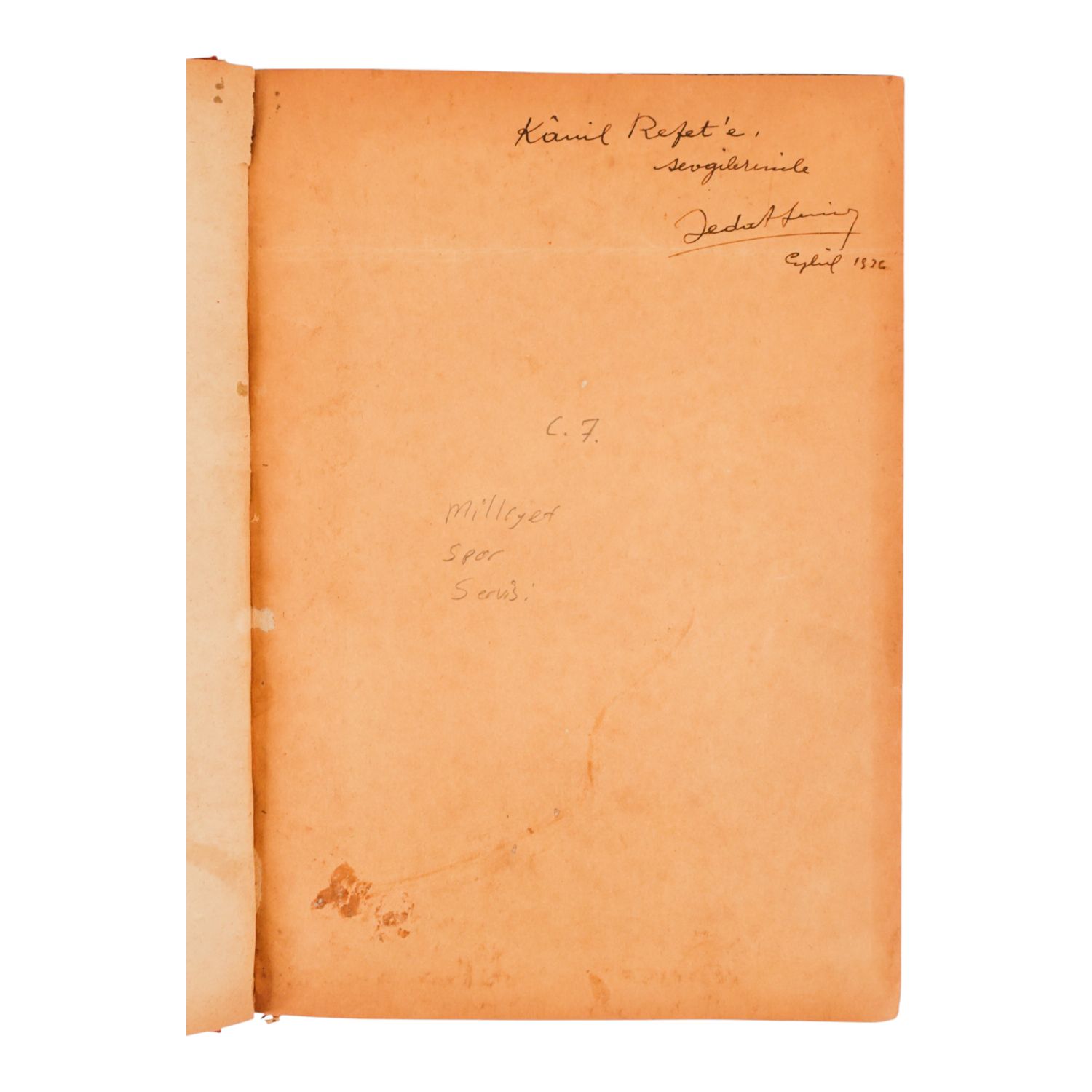 "Kamil Refet´e" sevgilerimle ithafıyla, Eylül 1936 tarihinde imzalanmıştır.